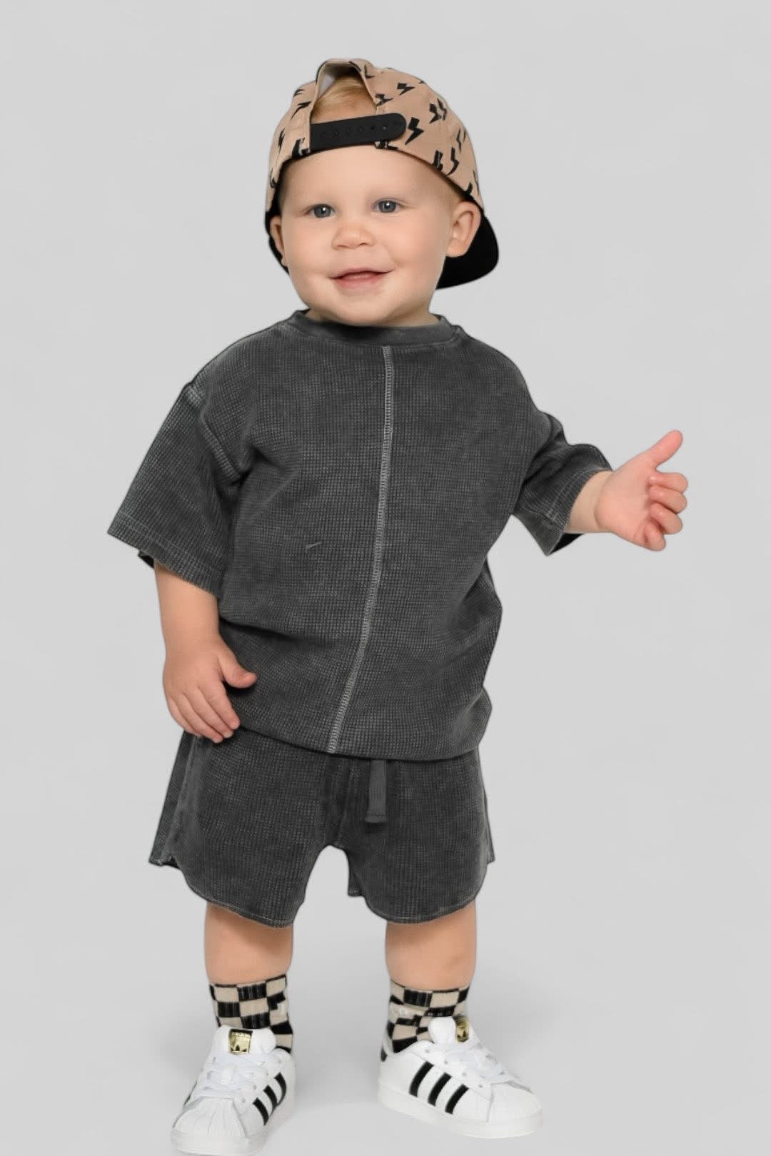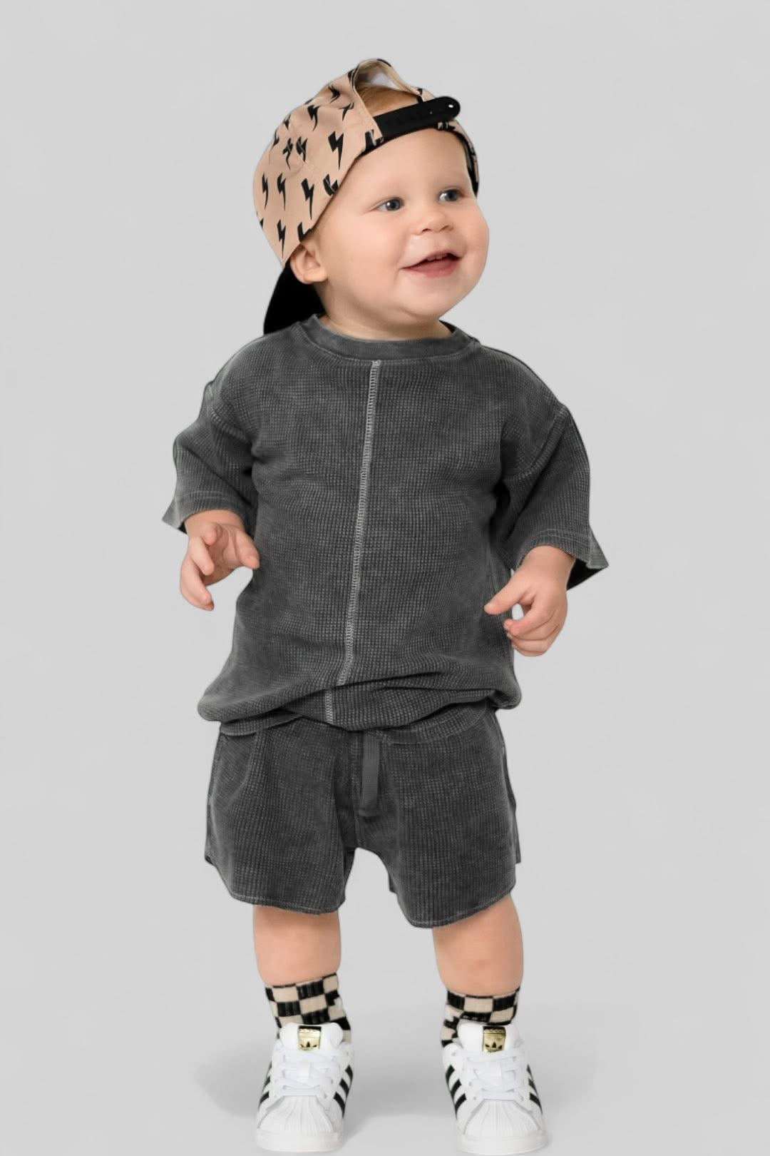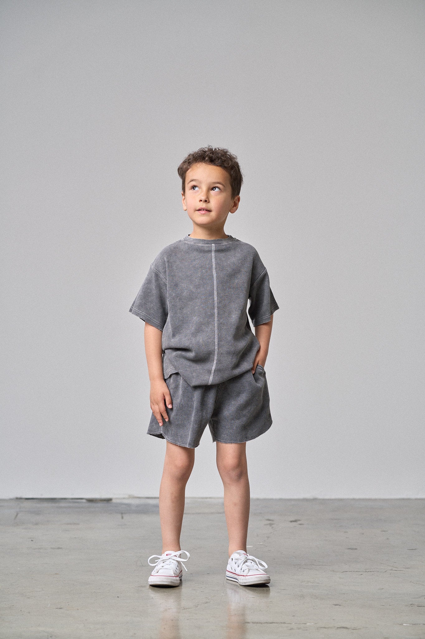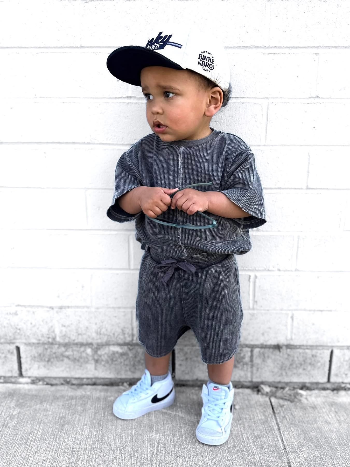 Simple, soft, and effortlessly cool. The Waffle Tee is a go-to staple for both you and your little one—perfect for easy days at home or out and about. Made from breathable waffle-knit fabric, it features a clean crewneck, center seam detail, and a relaxed fit for all-day comfort. Finished with our signature embroidered “LB” and a sewn-in care label for a tag-free feel. Wear it solo or pair it with the matching waffle shorts for a comfy, coordinated look.