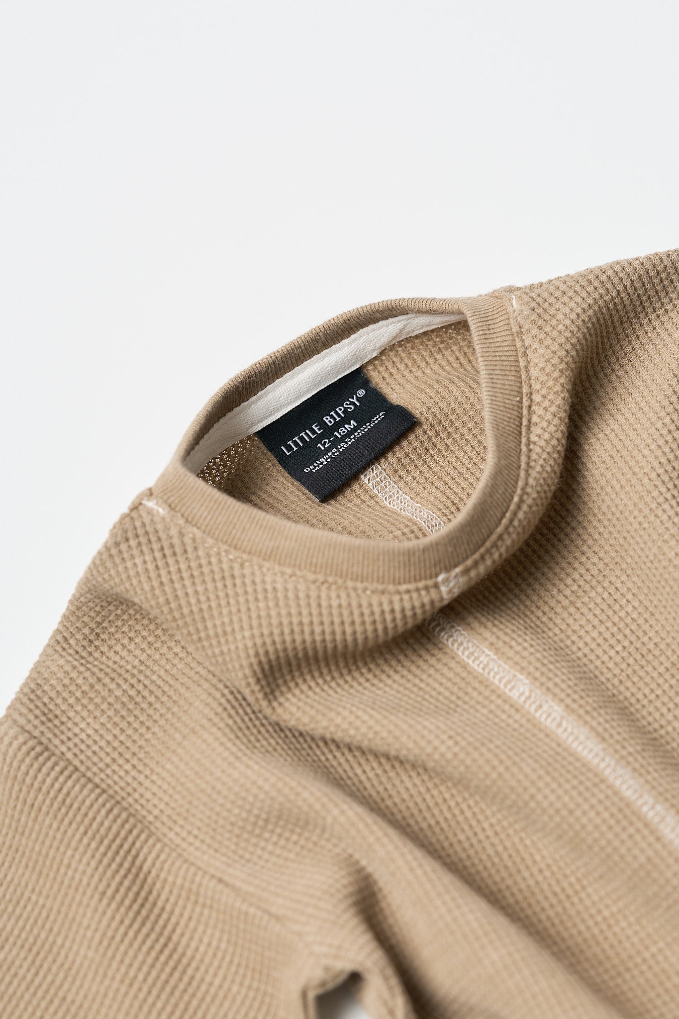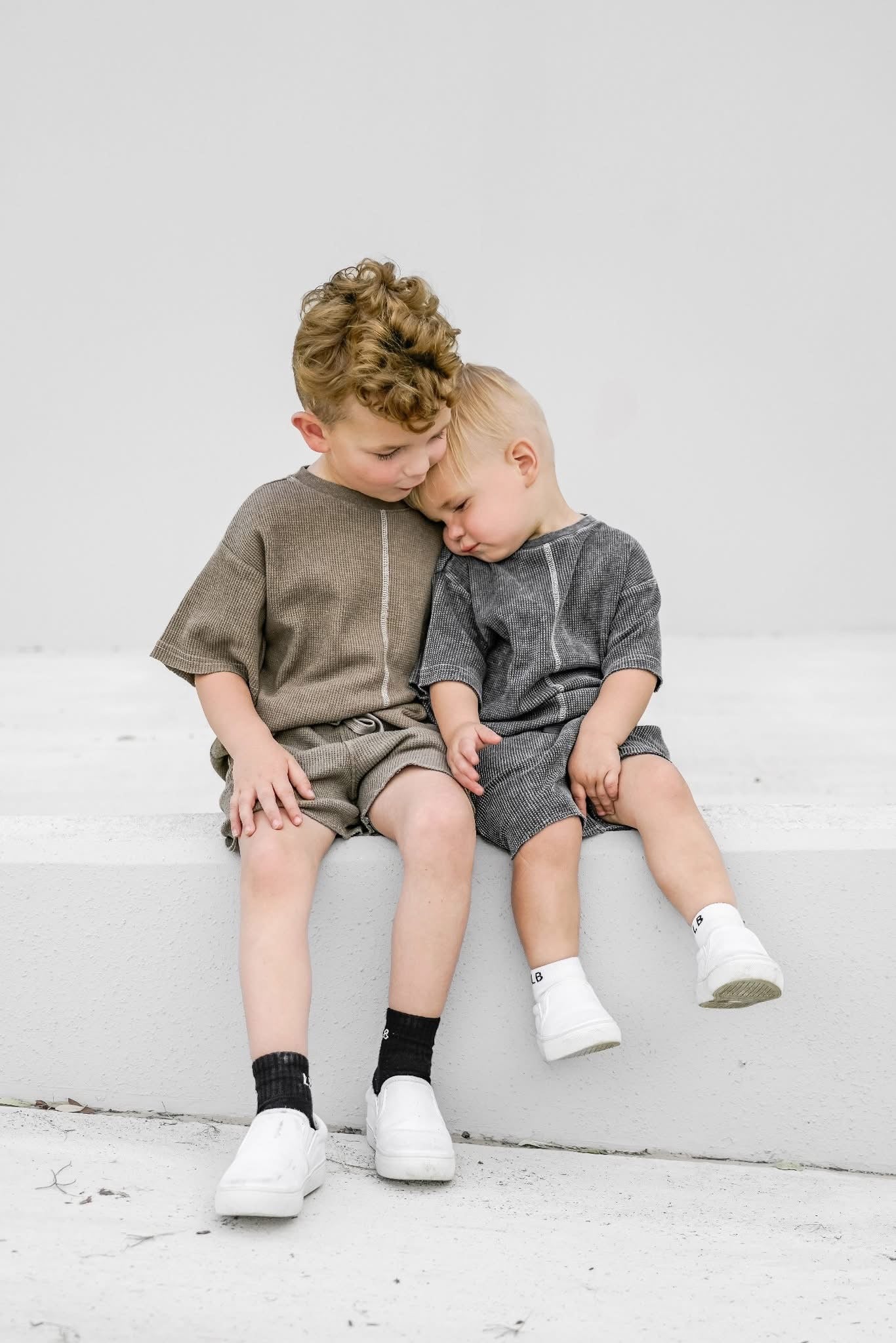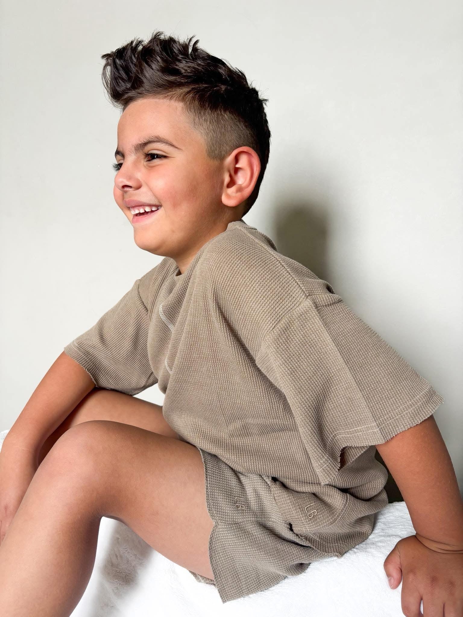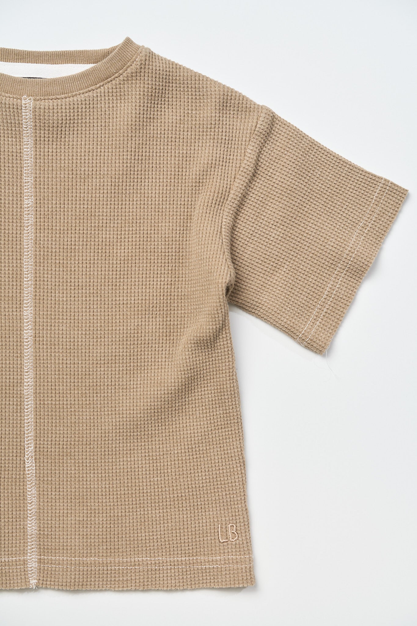 Simple, soft, and effortlessly cool. The Waffle Tee is a go-to staple for both you and your little one—perfect for easy days at home or out and about. Made from breathable waffle-knit fabric, it features a clean crewneck, center seam detail, and a relaxed fit for all-day comfort. Finished with our signature embroidered “LB” and a sewn-in care label for a tag-free feel. Wear it solo or pair it with the matching waffle shorts for a comfy, coordinated look.