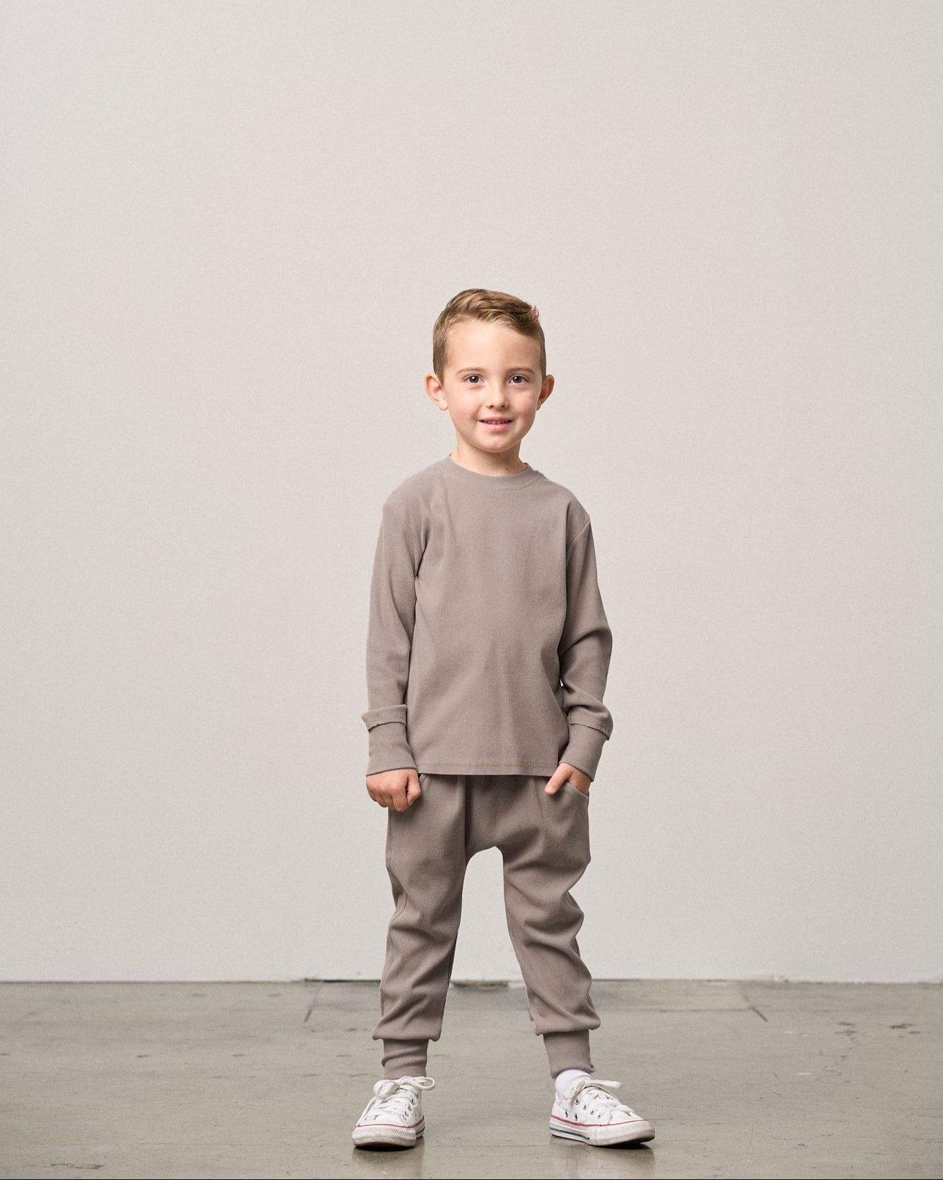 Long Sleeve Ribbed Tee - Mushroom