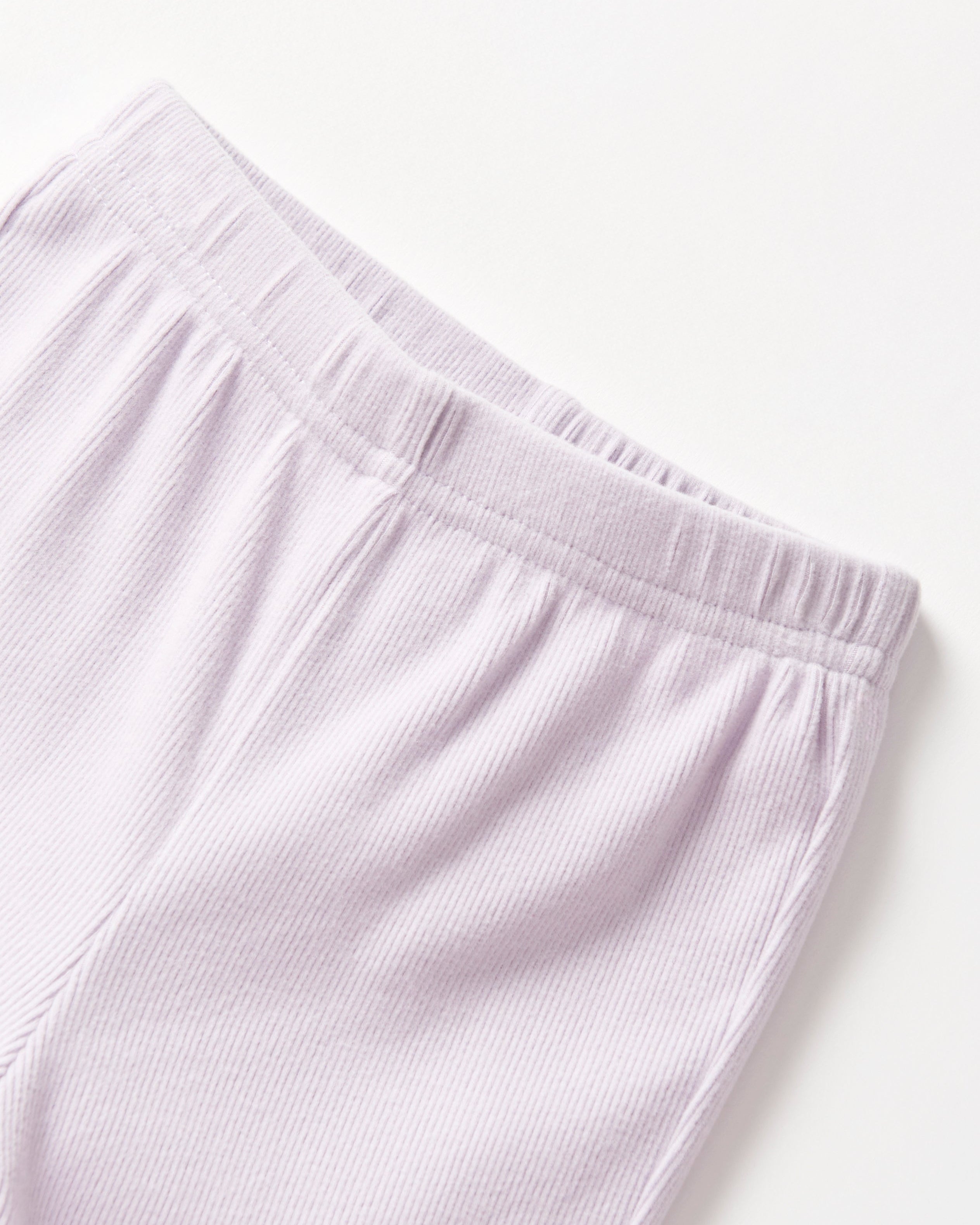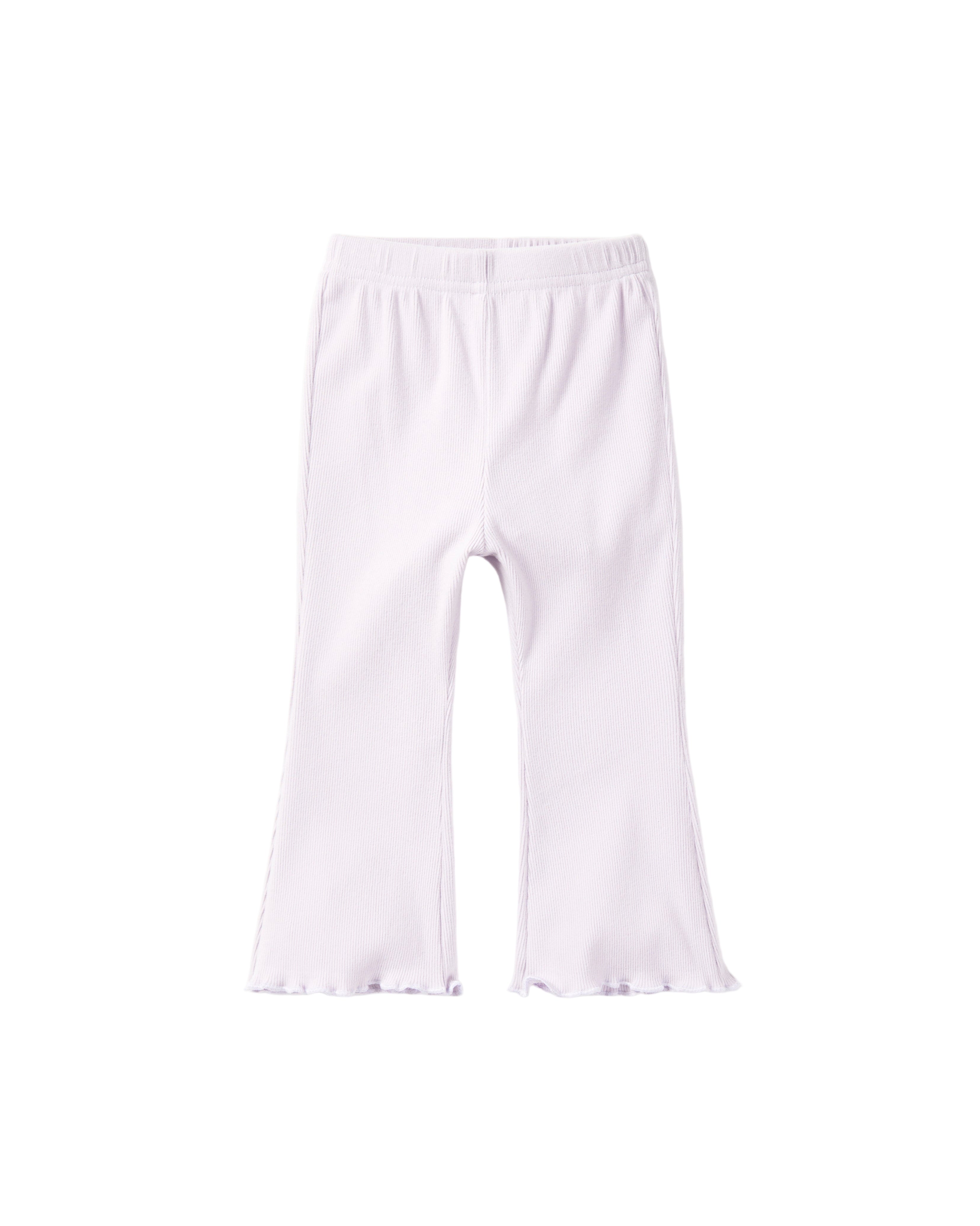 A fresh take on everyday comfort. Made from our soft brushed ribbed fabric in a dreamy Lilac hue, these flare pants bring a fun, easy style to any outfit. The ribbed elastic waistband keeps the fit snug yet comfy, while the scalloped flare hem adds a subtle, playful touch. Simple, stylish, and made for movement.