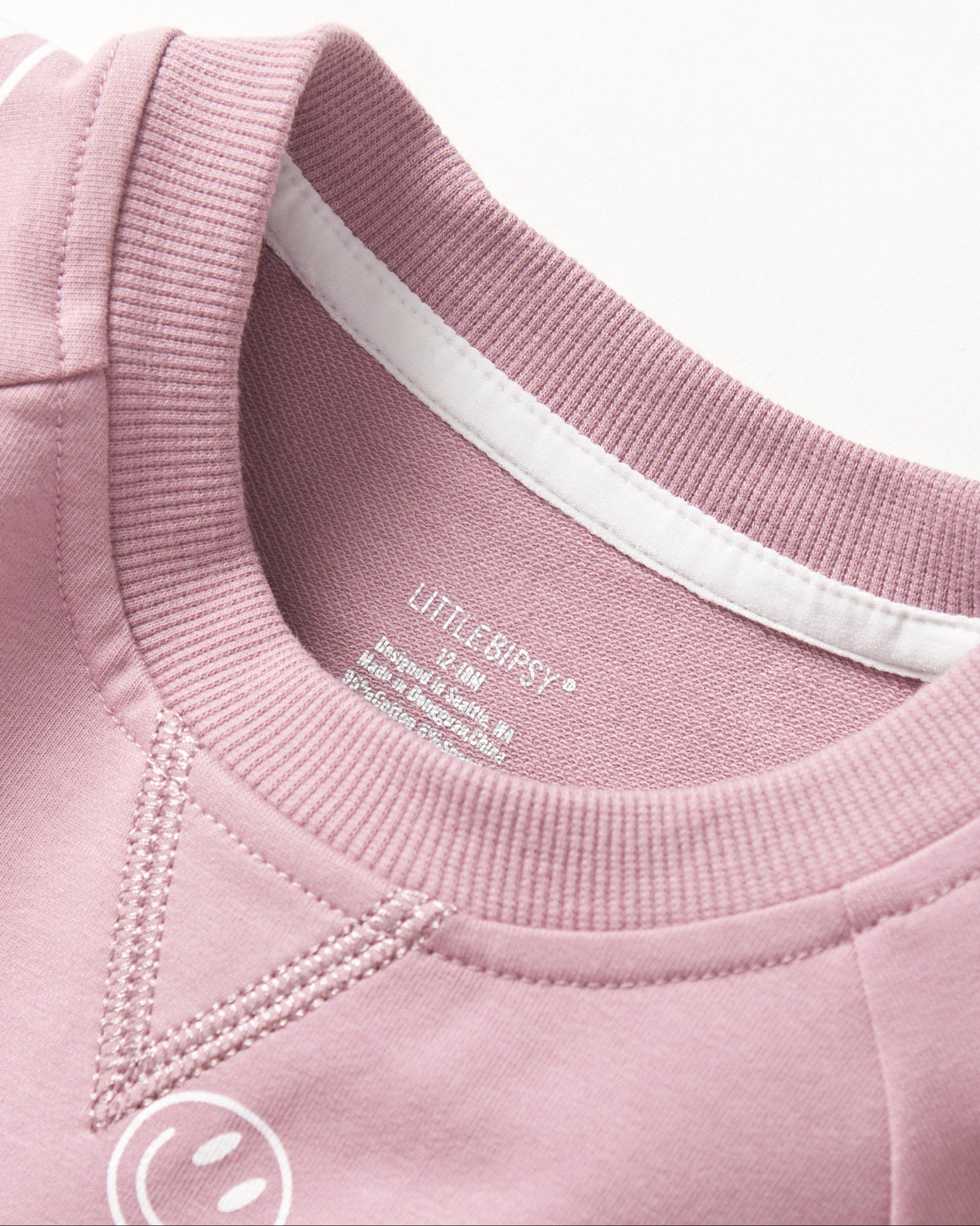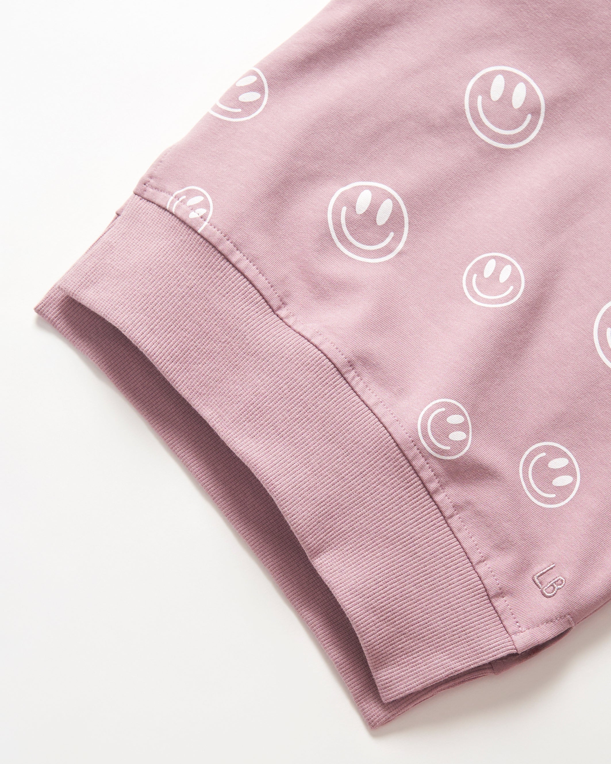 Easy comfort with a playful edge. Made with our signature soft fabric, this pullover keeps things casual and fun with its all-over smiley print. Finished with ribbed details at the neckline, cuffs, and hem, rollable cinched sleeves, and side slits for easy movement. The embroidered “LB” logo adds the perfect final touch.