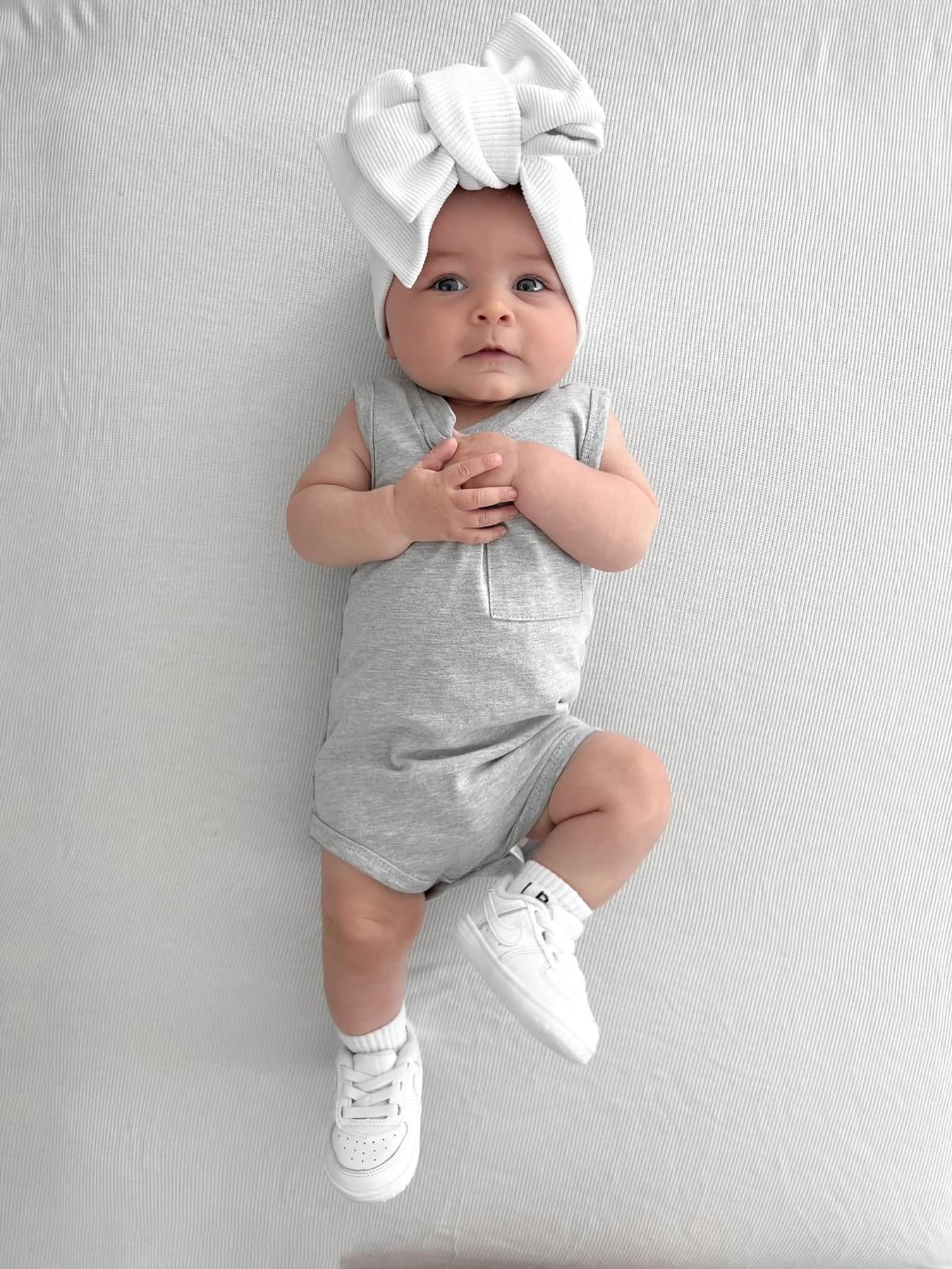 Our favorite onepiece just got a warm-weather update! Now sleeveless, this ultra-soft and timeless style is perfect on its own or layered for extra cuteness. Designed for comfort and convenience, it features a front pocket and three inner seam snaps for quick diaper changes.