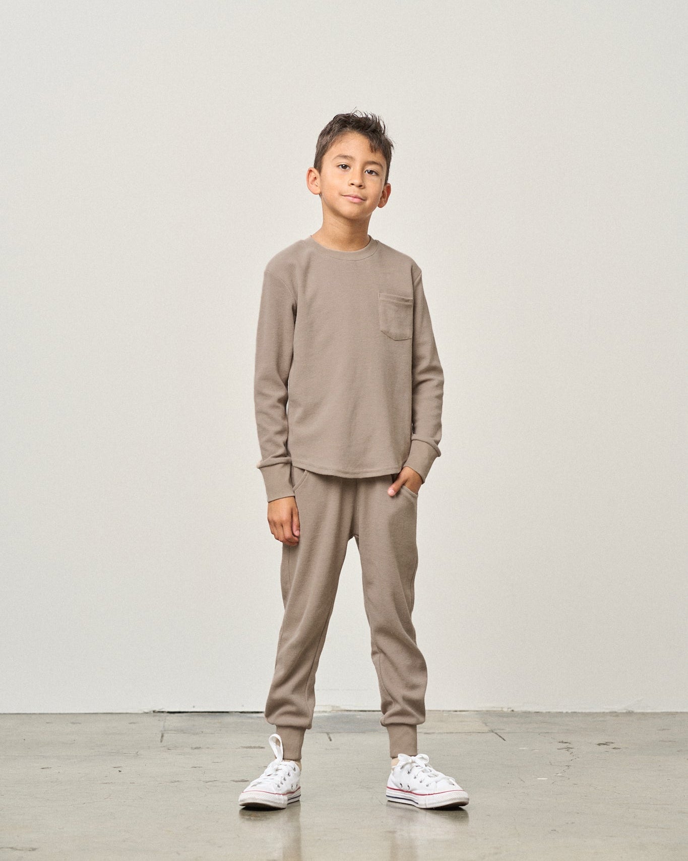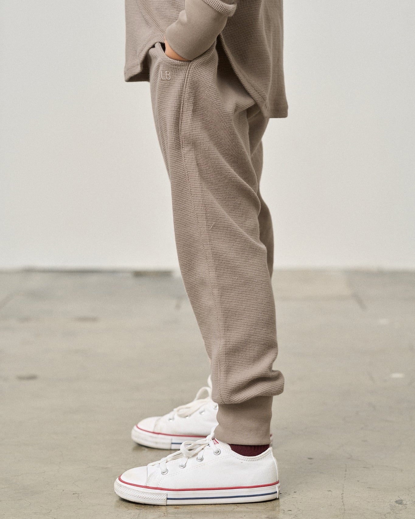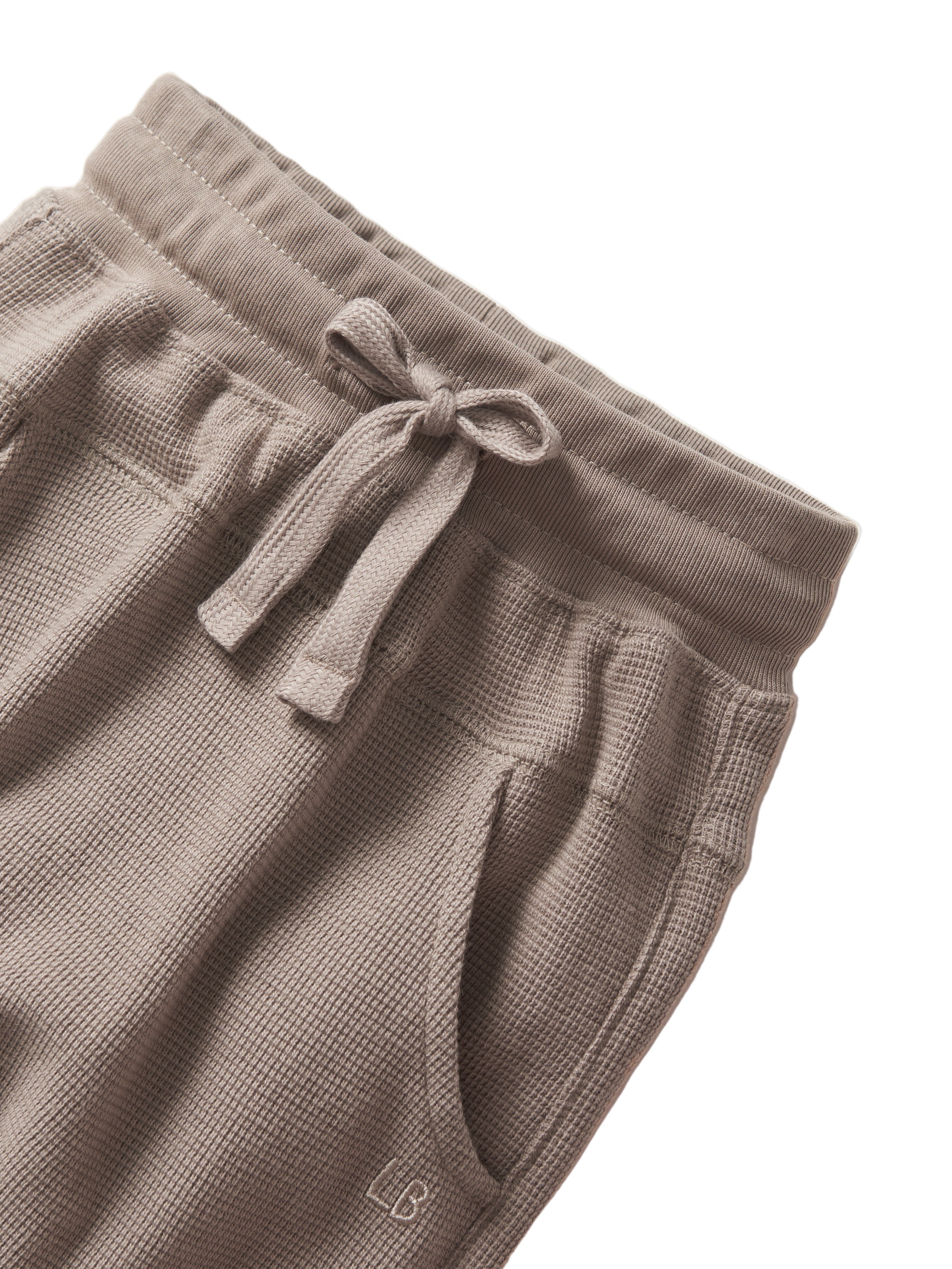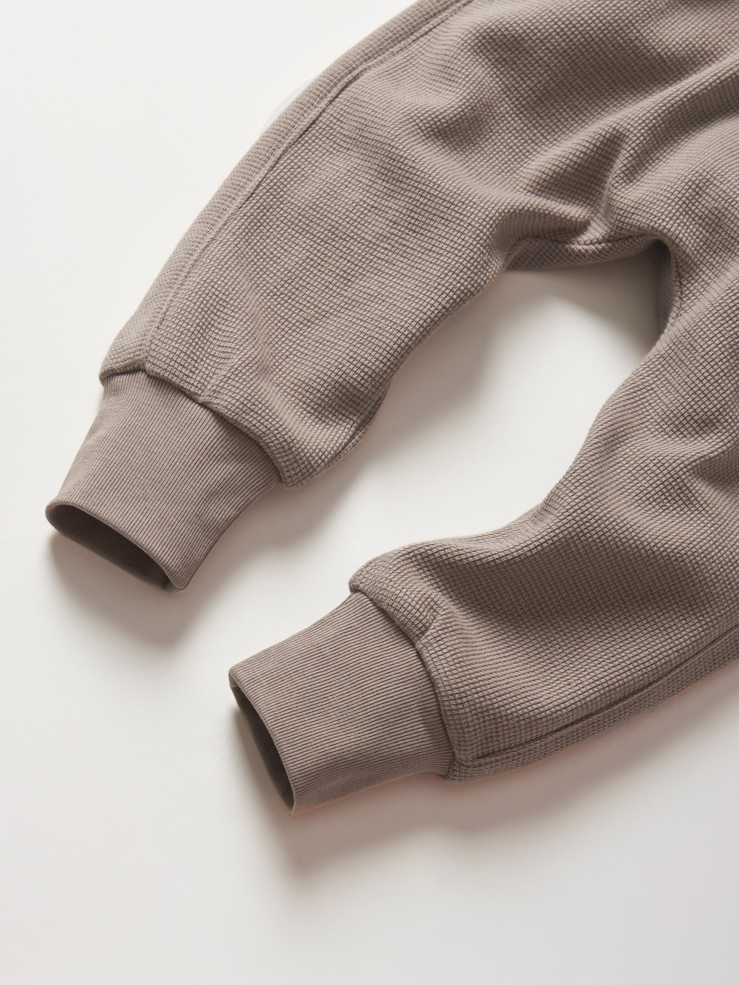 Complete the look with our Waffle Joggers, designed to match perfectly with our Waffle Tops. Available in Shadow, Mushroom and Huckleberry these joggers feature an adjustable drawstring waist and a relaxed fit for maximum comfort. The ribbed cuffs add a snug touch, making them the perfect cozy option for cooler weather. Available in sizes 0-3M to 12Y